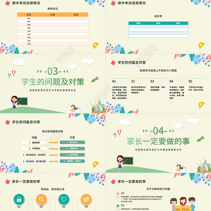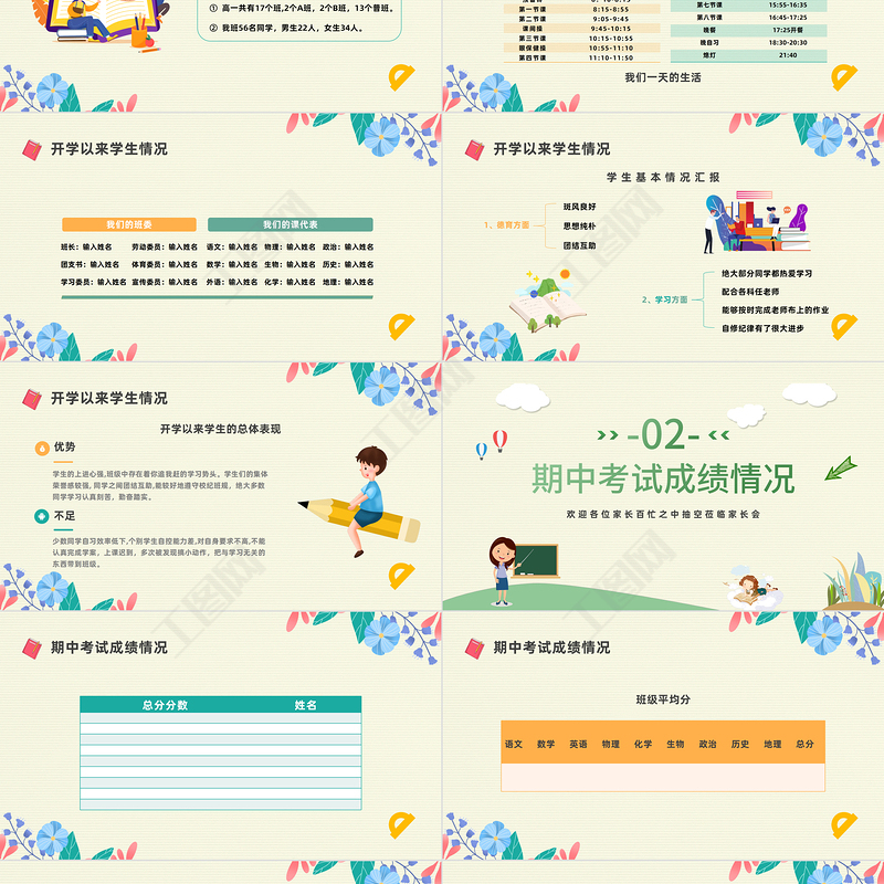 2022高一期中家長(zhǎng)會(huì)PPT卡通風(fēng)高中期中家長(zhǎng)會(huì)主題班會(huì)課件模板 Array