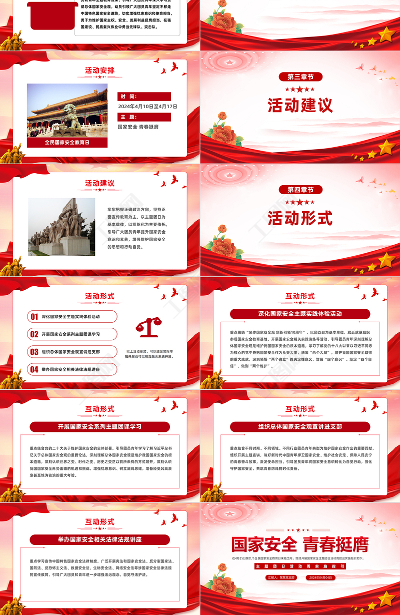 活動安排時 間:2024年4月10日至4月17日主 題:意 義:全民國家安全教育日國家安全 青春挺膺