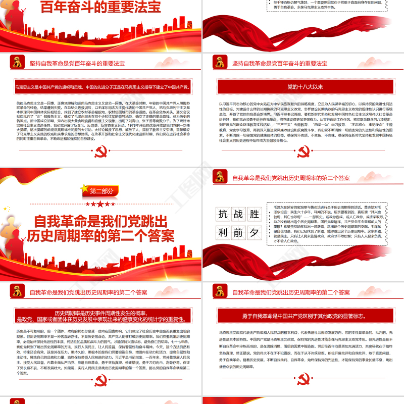 依靠黨的自我革命跳出歷史周期率PPT紅色黨政風黨員干部學習教育專題黨課課件模板 Array