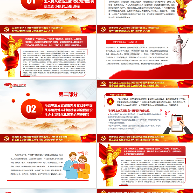 馬克思主義人民性和實踐性在中國得到充分貫徹PPT紅色簡約風黨員干部深入學習《決議》專題黨課課件模板 Array