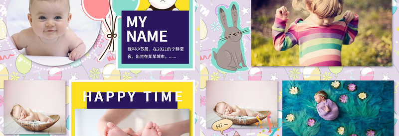 淡紫色高雅生日快樂寶寶成長檔案PPT模板