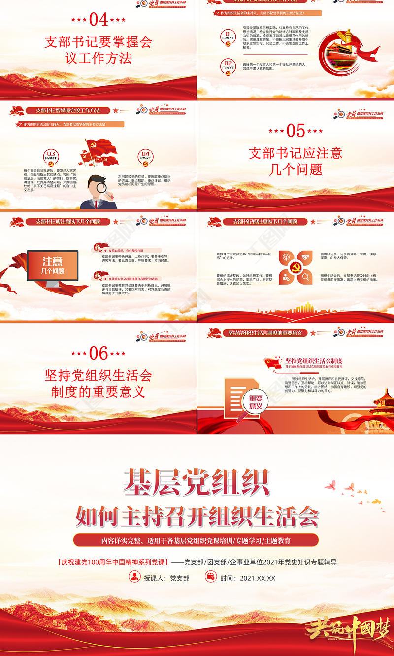 【慶祝建黨100周年中國精神系列黨課】——黨支部/團支部/企事業單位2021年黨史知識專題輔導基層黨組織如何主持召開組織生活會內容詳實完整、適用于各基層黨組織黨課培訓/專題學習/主題教育