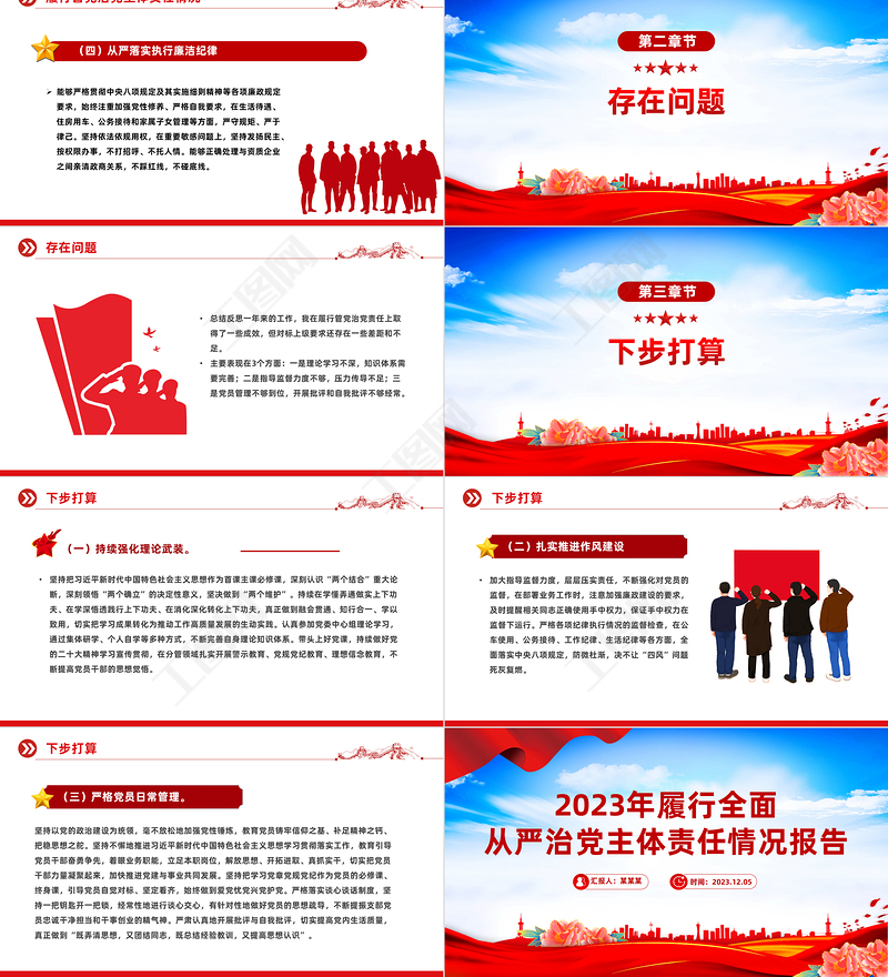 工圖網提供全面從嚴治黨主體責任情況報告PPT紅色精美黨建個人述職報告課件 供會員免費下載。更多精彩黨課PPT素材,盡在工圖網。