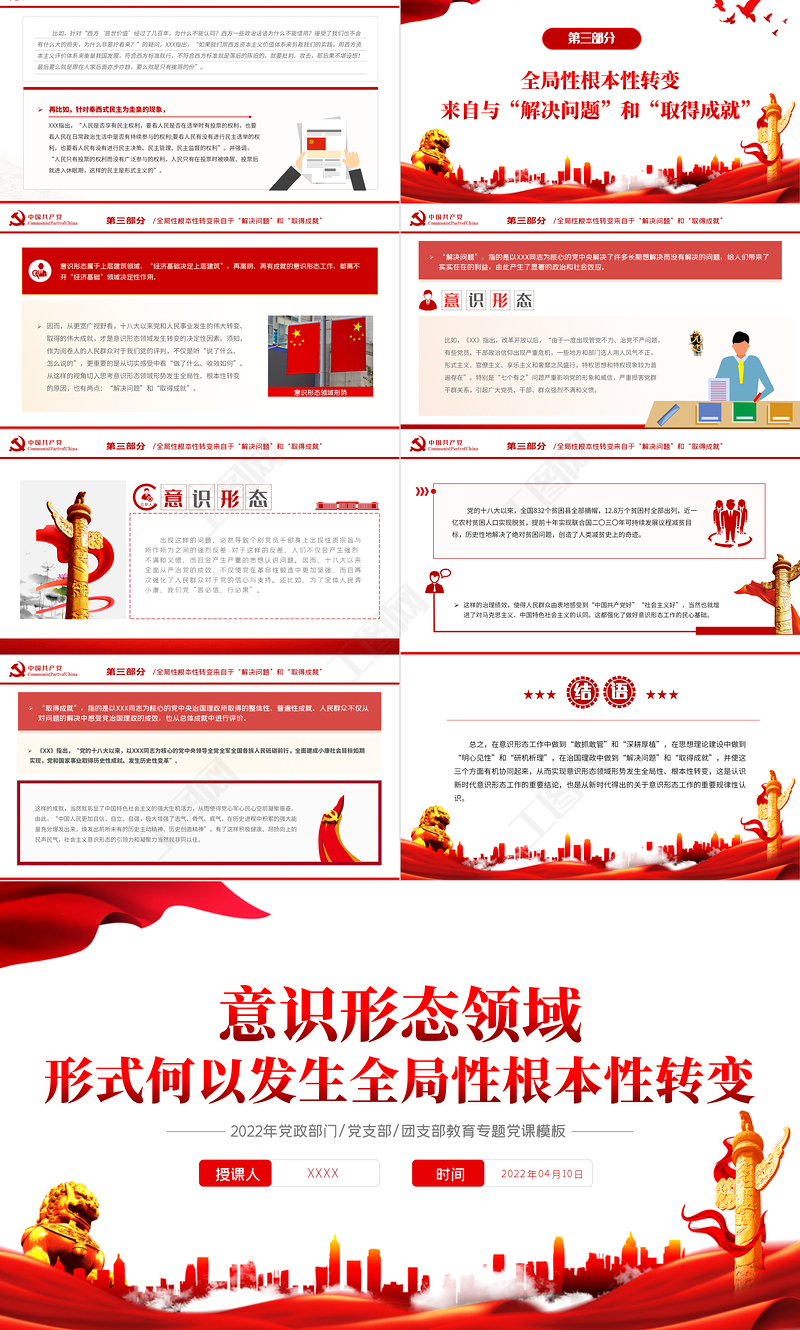 意識形態領域形勢何以發燒全局性根本性轉變PPT紅色黨政風2022年黨政部門教育專題黨課課件模板 Array
