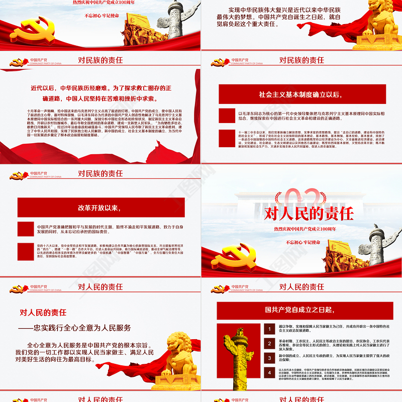 工圖網提供1921-2021中國共產黨的歷史責任PPT紅色莊嚴黨對民族人民的歷史責任建黨100周年黨史黨課課件供會員免費下載。更多精彩黨課PPT素材,盡在工圖網。