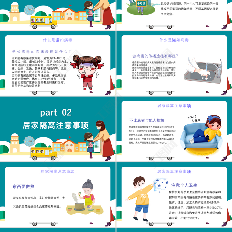工圖網提供藍色卡通插畫諾如病毒防疫科普講義PPT模板供會員免費下載。更多精彩黨課PPT素材,盡在工圖網。
