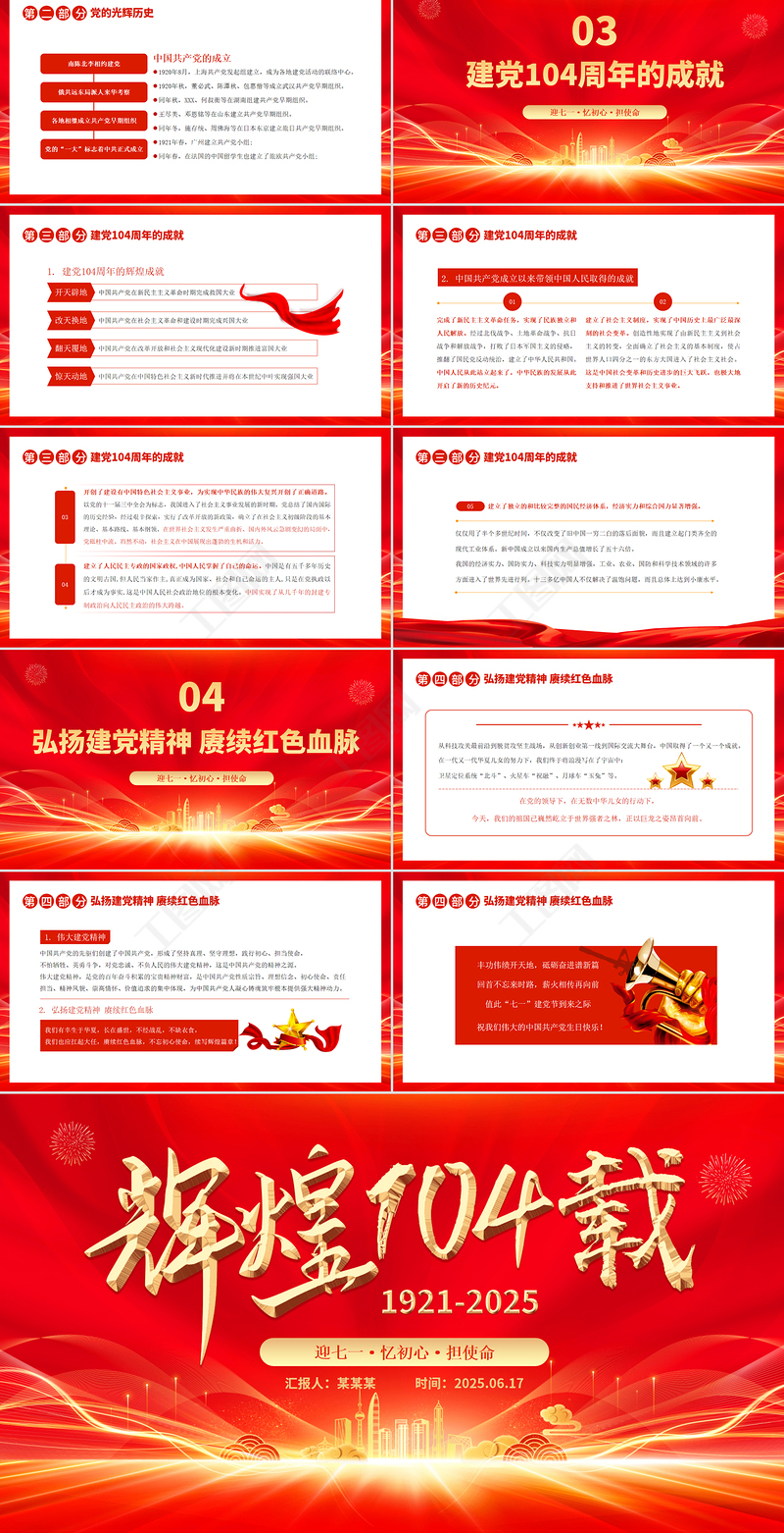 輝煌104載PPT紅色精美迎七一憶初心擔使命獻禮建黨節建黨104周年黨課課件 Array