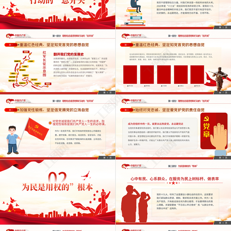 第一部分 理想信念是思想和行動的“總開關”心中有黨、信念堅定,在對黨忠誠上樹標桿、做表率當前我們正處在全面建成小康社會的攻堅期,能否充分激發黨員干部理想信念力量,對我們來說是一場前所未有的大考。2020年是“十三五”規劃目標任務的收官之年,是落實十九屆四中全會精神的開局之年,我們黨員干部只有堅守信仰,扛好旗幟,永遠跟黨走,才能保持方向不偏、立場不移。