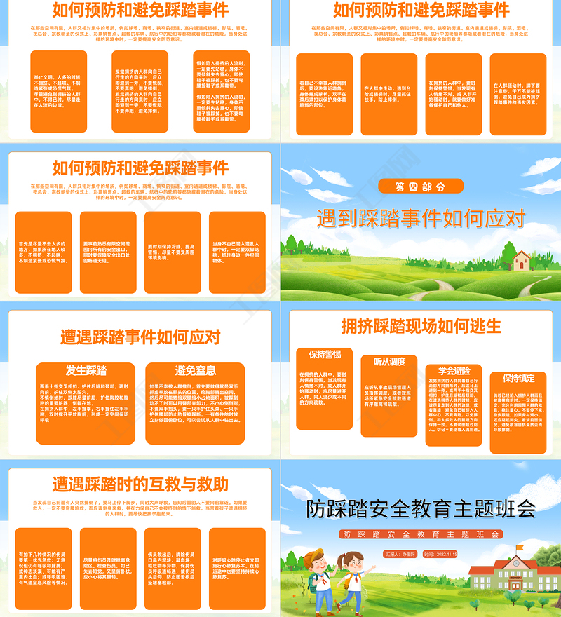 2022防踩踏安全教育主題班會PPT清新卡通風防踩踏安全教育主題班會課件模板 Array