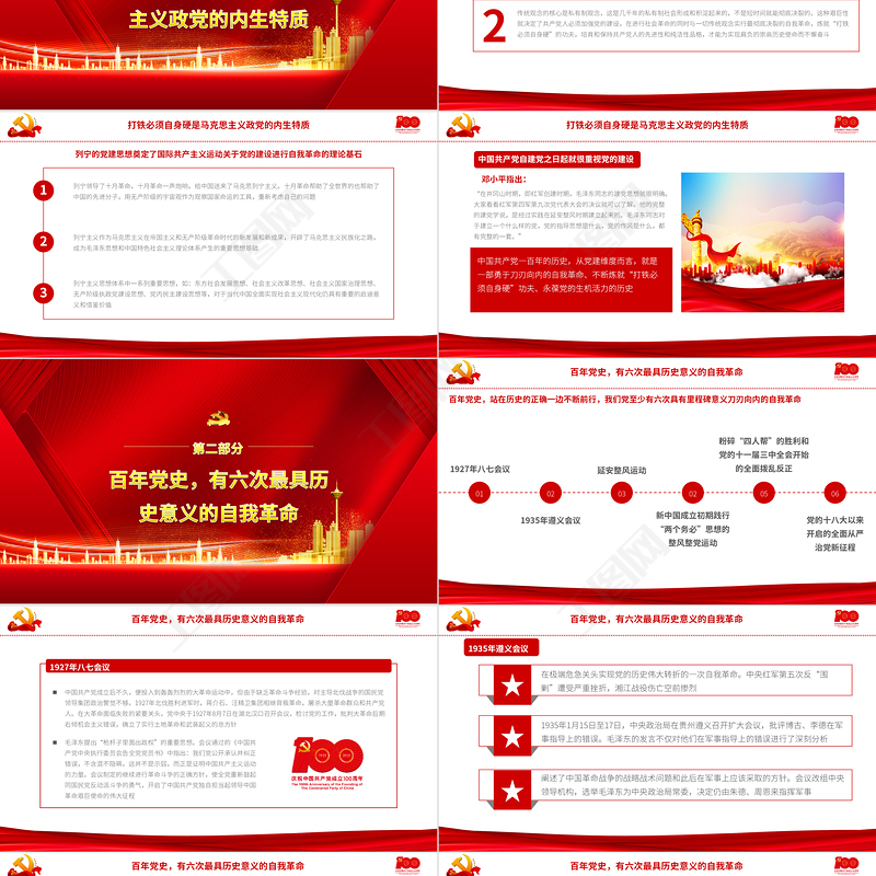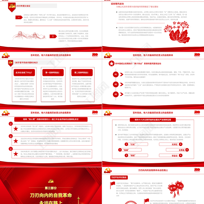 2021 最具歷史意義的六次自我革命 PPT模板 建黨100周年 專題 輔導 黨課 課件 PPT模板 建黨百年 建黨100年 黨員 入黨 黨史 建黨史 光輝歷程 百年建黨 黨史課件 黨史ppt 微黨課 黨課PPT 百年 ppt 初心使命 不忘初心 擔當作為 100周年 歷史 黨的光輝歷程 百年黨史 Array
