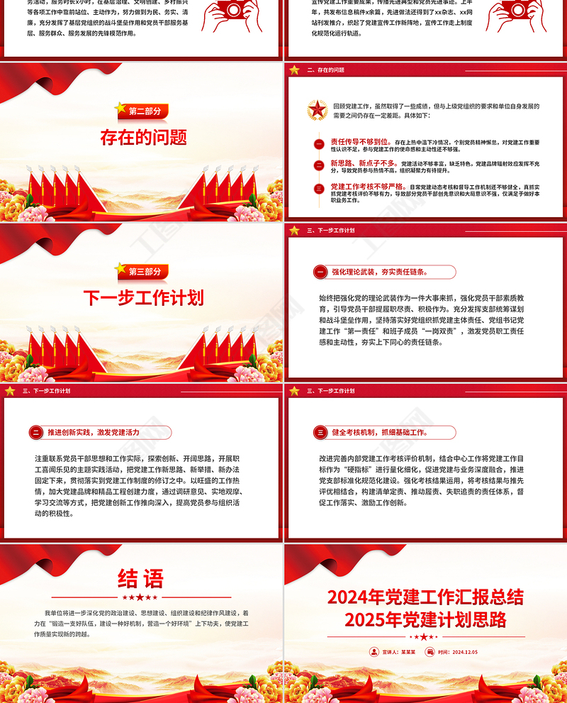 工圖網提供2024年黨建工作匯報總結及2025年黨建計劃思路PPT模板供會員免費下載。更多精彩黨課PPT素材,盡在工圖網。