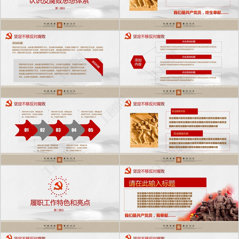堅(jiān)定不移反對(duì)腐敗此處添加詳細(xì)文本描述,建議與標(biāo)題相關(guān)并符合整體語(yǔ)言風(fēng)格,語(yǔ)言描述盡量簡(jiǎn)潔生動(dòng)。盡量將每頁(yè)幻燈片的字?jǐn)?shù)控制在 200字以?xún)?nèi),據(jù)統(tǒng)計(jì)每頁(yè)幻燈片的最好控制在5分鐘之內(nèi)。點(diǎn)擊此處 添加內(nèi)容點(diǎn)擊此處 添加內(nèi)容點(diǎn)擊此處 添加內(nèi)容點(diǎn)擊此處 添加內(nèi)容