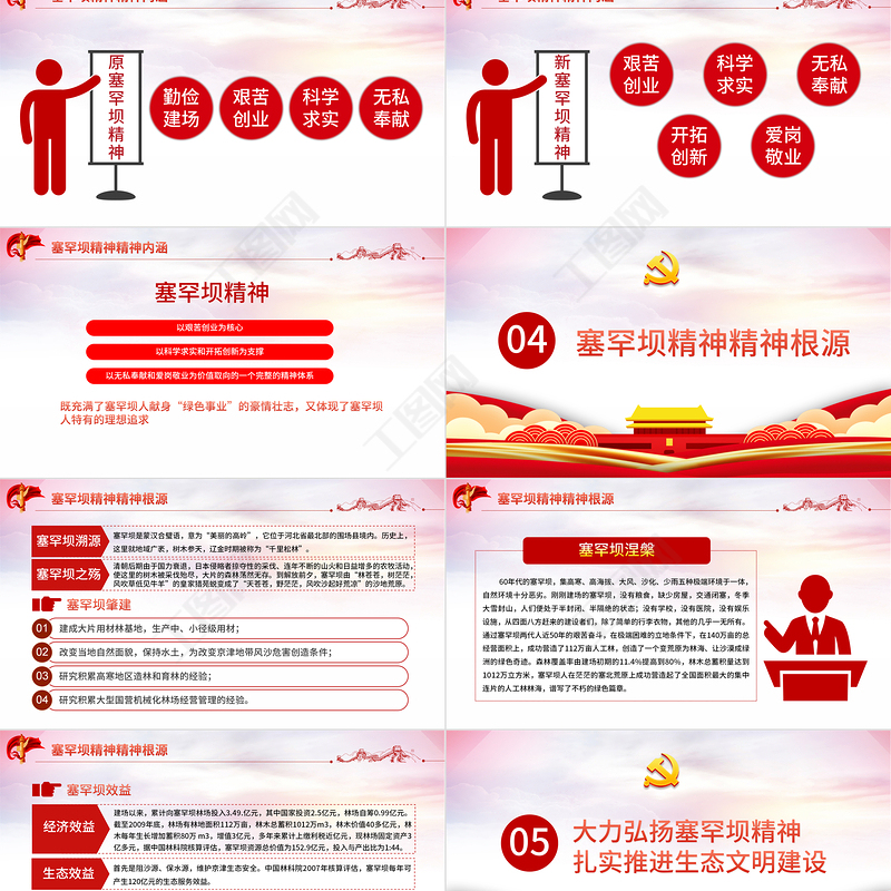 2021弘揚塞罕壩精神PPT扎實推進生態文明建設環保黨課課件模板下載
