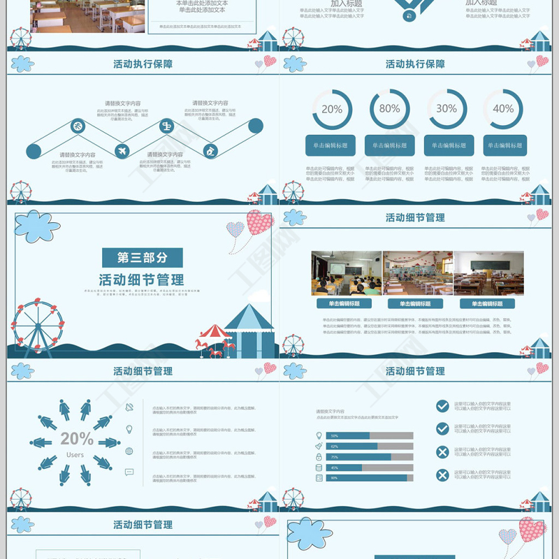 工圖網提供2021藍色卡通風六一兒童節活動策劃PPT模板供會員免費下載。更多精彩黨課PPT素材,盡在工圖網。