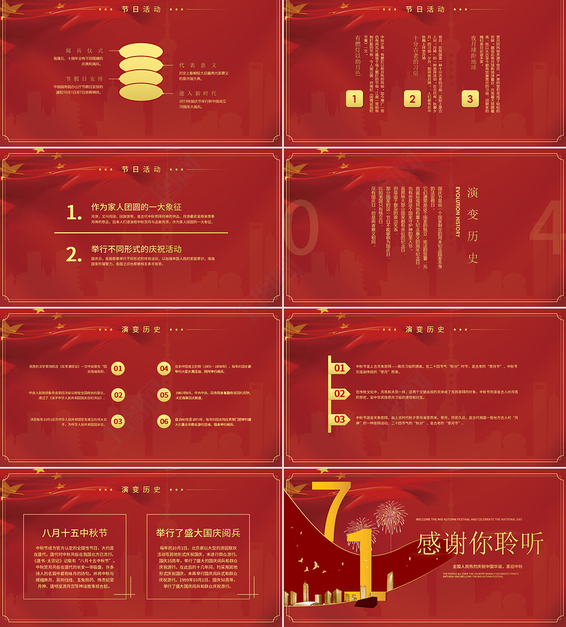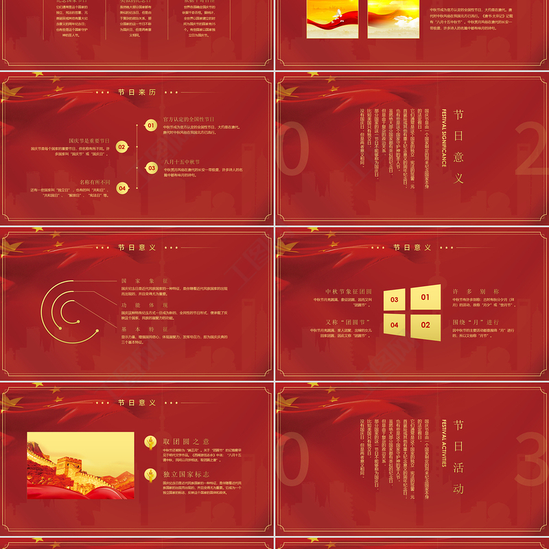 中國紅,時尚,大氣,背景,迎中秋,慶國慶,雙節,PPT模板,節日慶典, Array