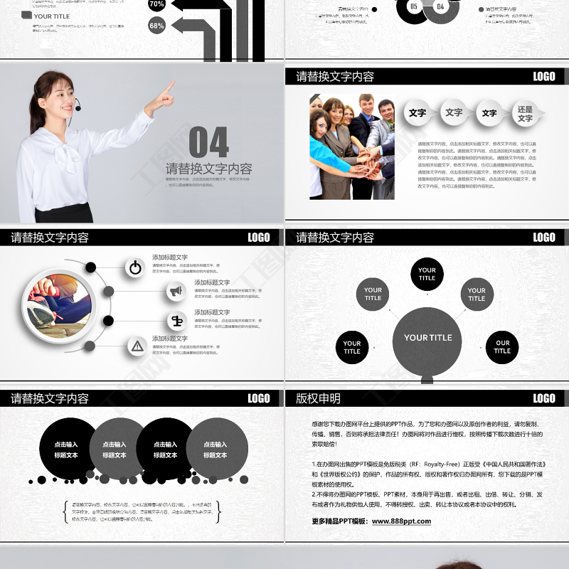 版權(quán)申明LOGO感謝您下載辦圖網(wǎng)平臺(tái)上提供的PPT作品,為了您和辦圖網(wǎng)以及原創(chuàng)作者的利益,請(qǐng)勿復(fù)制、傳播、銷售,否則將承擔(dān)法律責(zé)任!辦圖網(wǎng)將對(duì)作品進(jìn)行維權(quán),按照傳播下載次數(shù)進(jìn)行十倍的索取賠償!1.在辦圖網(wǎng)出售的PPT模板是免版稅類(RF:Royalty-Free)正版受《中國(guó)人民共和國(guó)著作法》和《世界版權(quán)公約》的保護(hù),作品的所有權(quán)、版權(quán)和著作權(quán)歸辦圖網(wǎng)所有,您下載的是PPT模板素材的使用權(quán)。2.不得將辦圖網(wǎng)的PPT模板、PPT素材,本身用于再出售,或者出租、出借、轉(zhuǎn)讓、分銷、發(fā)布或者作為禮物供他人使用,不得轉(zhuǎn)授權(quán)、出賣、轉(zhuǎn)讓本協(xié)議或者本協(xié)議中的權(quán)利。更多精品PPT模板:www.888ppt.com