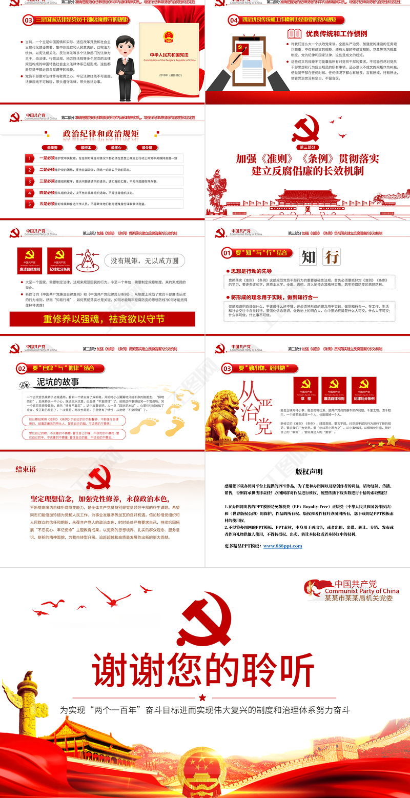 第二部分 準確把握黨的紀律規矩的科學內涵和精神實質,,,,增強守紀律講規矩的自覺性和堅定性優良傳統和工作慣例對我們這么大一個執政黨來講,全面從嚴治黨、加強黨的建設的任務艱巨繁重,不僅有成文的規矩,還有大量的不成文規矩。黨章等黨內規章制度、黨的紀律和國家法律,這些是成文的規矩。這些成文的規矩不可能囊括所有對黨員干部的要求,不可能窮盡對黨員干部思想和行為應當規范的所有事項,還必須以不成文的規矩作為補充,使黨員干部在任何時候、任何情況下都心有所畏、言有所戒、行有所止,使管黨治黨沒有空白、不留盲區。