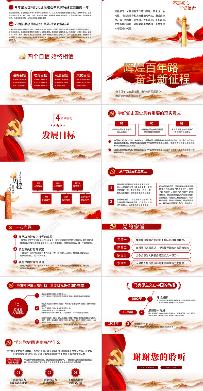 歷程黨的輝歷程不忘初心牢記使命1937抗日戰爭1945解放戰爭1949全面建設1956文革時期1976改革開放1990至今新的時代