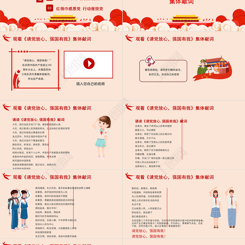 觀看《請黨放心,強國有我》集體獻詞回首百年路 奮發強國情紅領巾感恩黨 行動報效黨010203班會流程目 錄