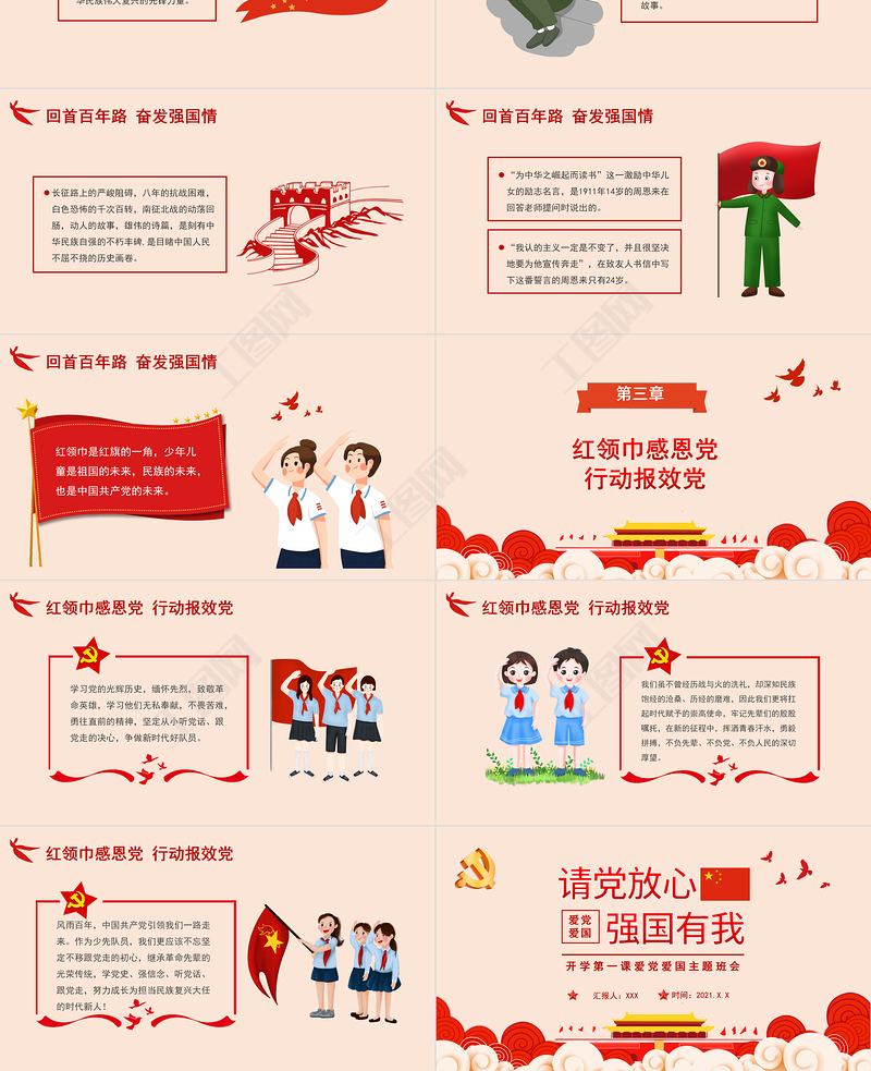 工圖網提供2021請黨放心強國有我PPT紅色回首百年路奮發強國請青少年愛國主義教育黨課課件供會員免費下載。更多精彩黨課PPT素材,盡在工圖網。