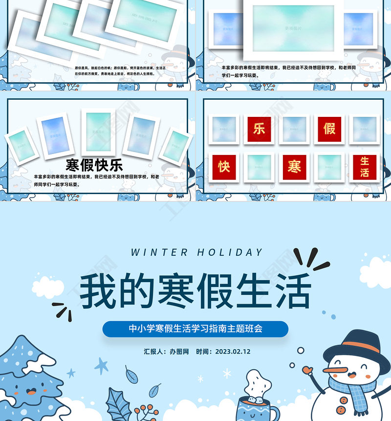 2023我的寒假生活PPT卡通風中小學生我的寒假生活電子相冊課件模板 Array