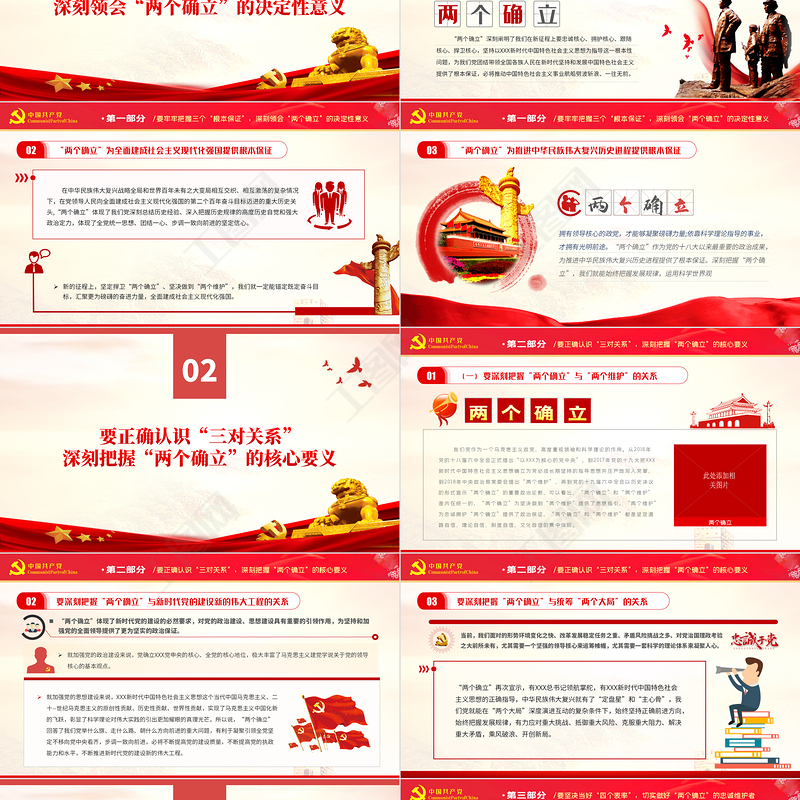 1要牢牢把握三個“根本保證”,深刻領會“兩個確立”的決定性意義2要正確認識“三對關系”,深刻把握“兩個確立”的核心要義3要堅決當好“四個表率”,切實做好“兩個確立”的忠誠維護者