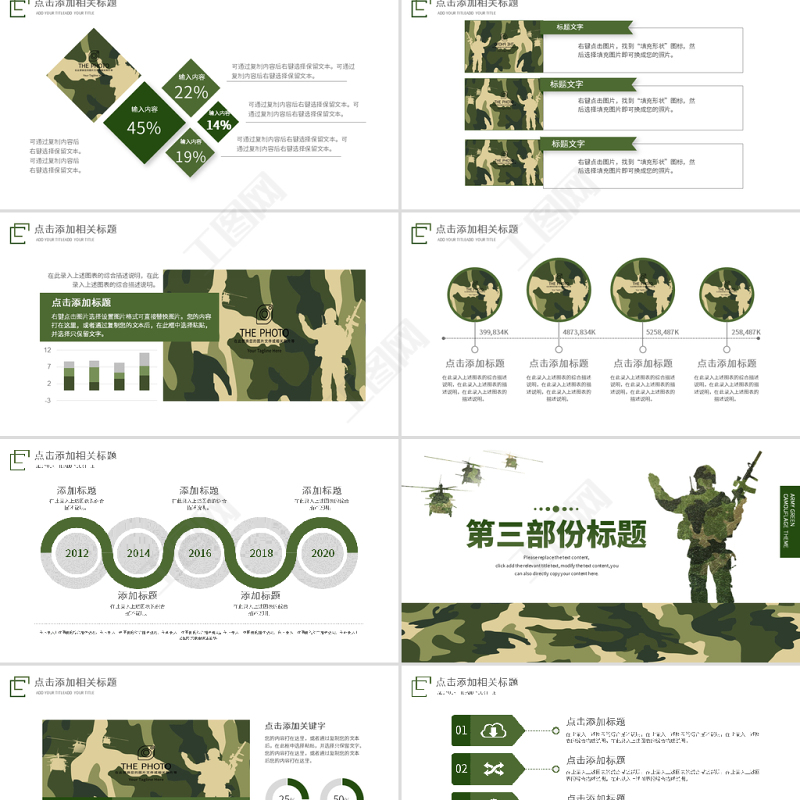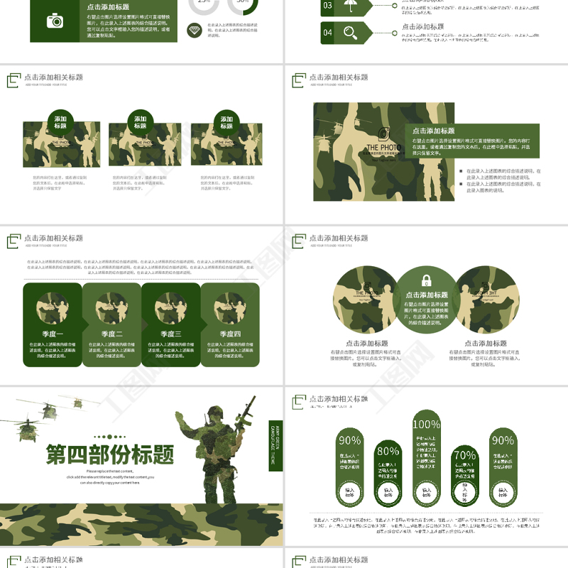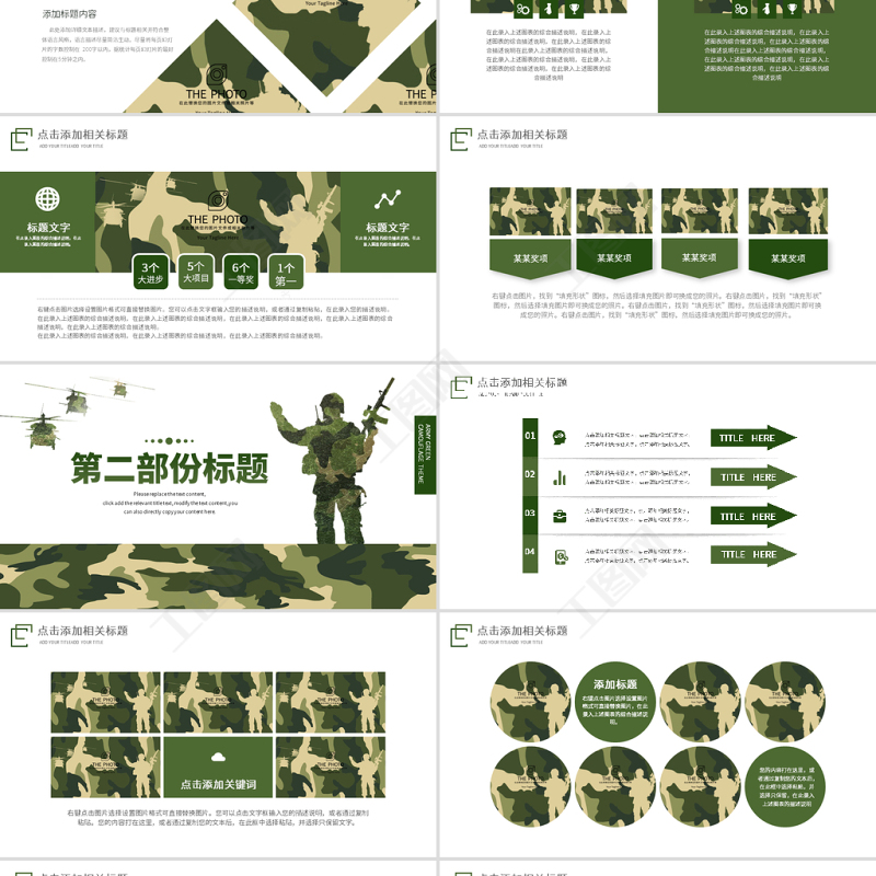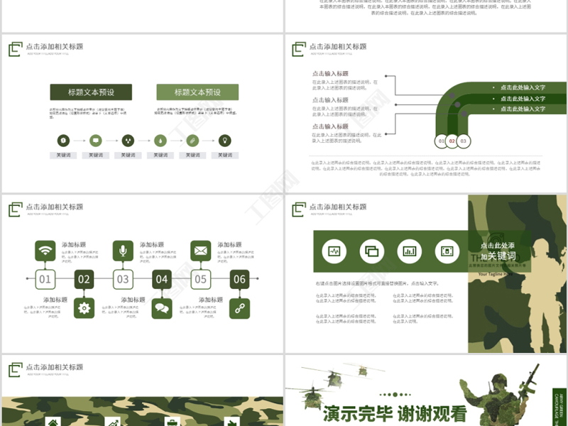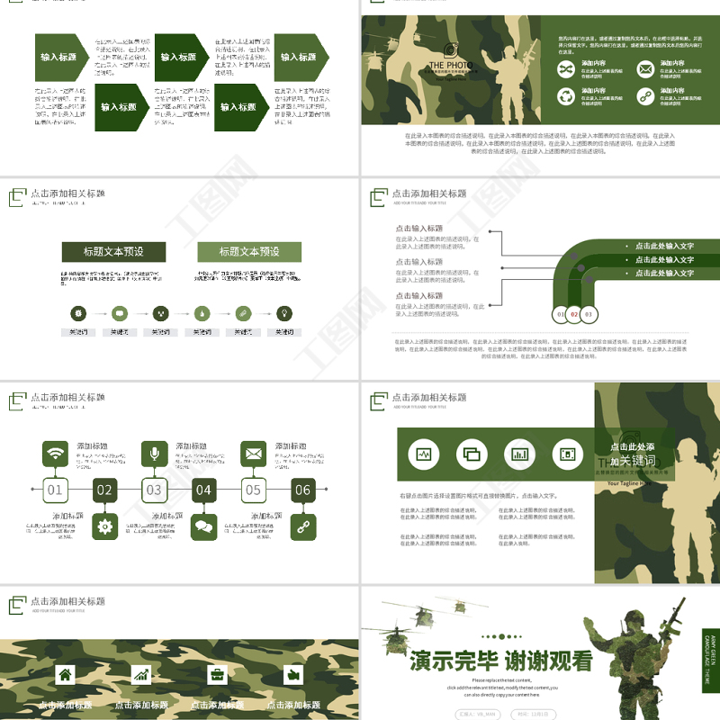 工圖網提供原創迷彩軍綠色軍人部隊主題教育演習PPT模板供會員免費下載。更多精彩黨課PPT素材,盡在工圖網。