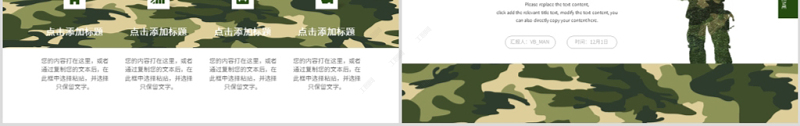 原創迷彩軍綠色軍人部隊主題教育演習PPT模板