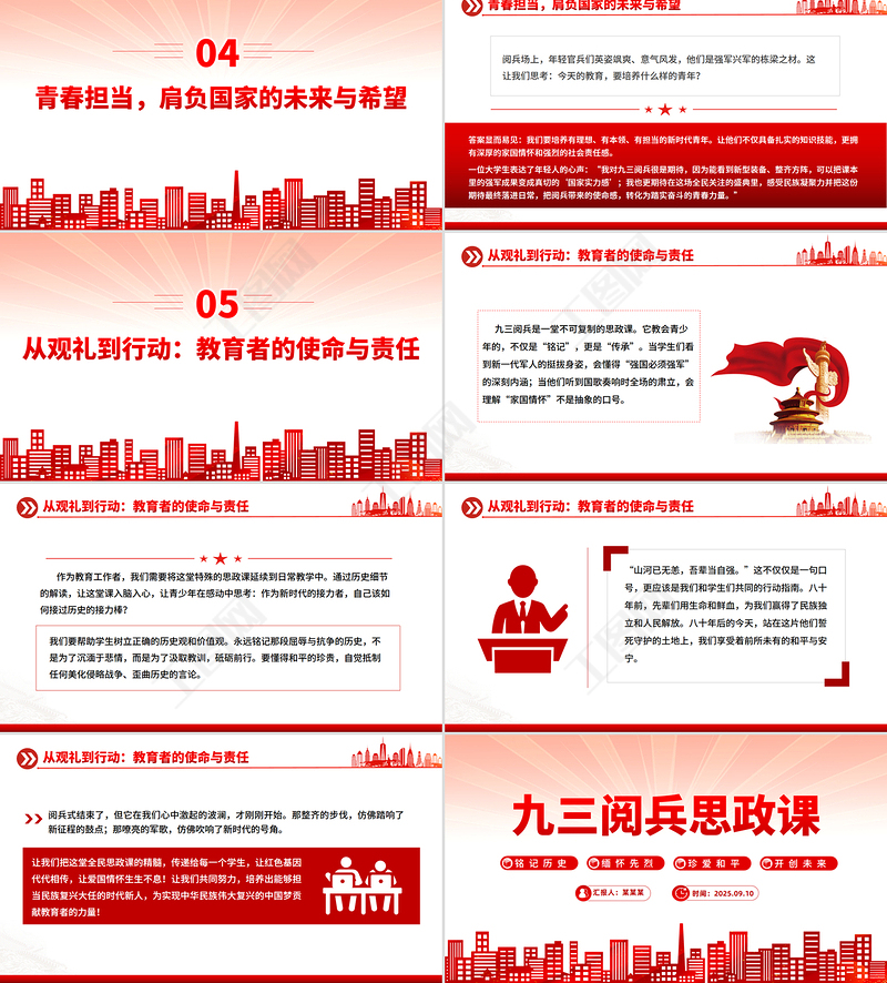 工圖網(wǎng)提供九三閱兵思政課PPT銘記歷史緬懷先烈珍愛和平開創(chuàng)未來黨課供會員免費下載。更多精彩黨課PPT素材,盡在工圖網(wǎng)。