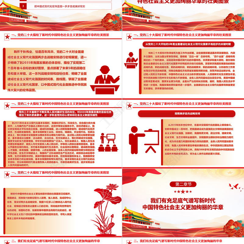 第一章節黨的二十大描繪了新時代中國 特色社會主義更加絢麗華章的壯美圖景