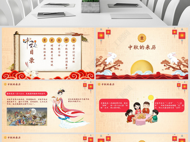 原創(chuàng)中國(guó)風(fēng)團(tuán)圓節(jié)中秋節(jié)主題班會(huì)PPT模板-版權(quán)可商用