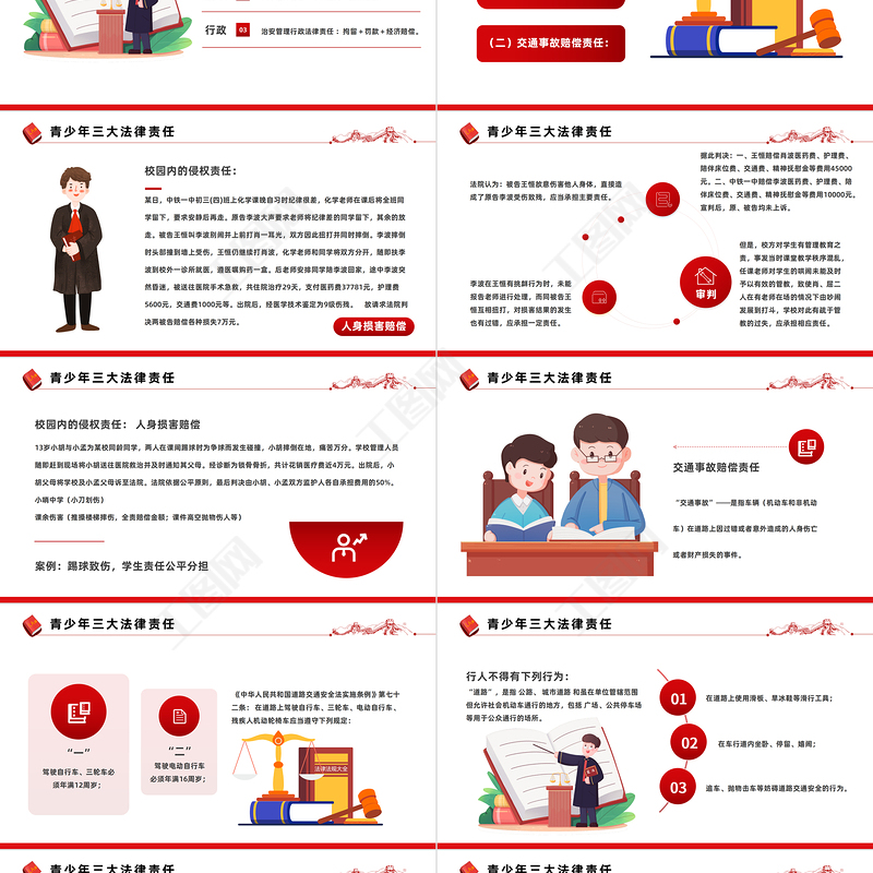 (一)校園內的侵權責任:人身損害賠償 財產損害賠償(二)交通事故賠償責任:青少年三大法律責任