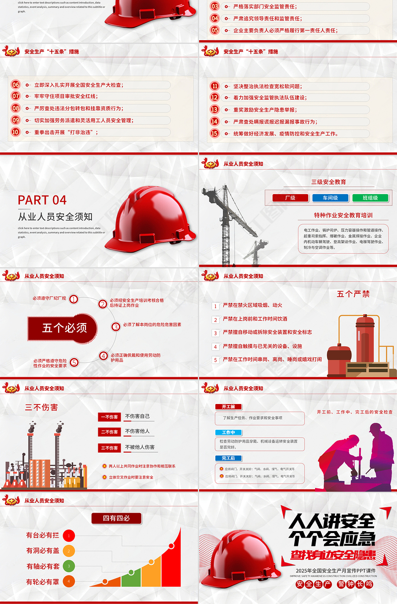 2025安全生產月PPT紅色創意人人講安全個個會應急查找身邊安全隱患宣傳課件模板 Array