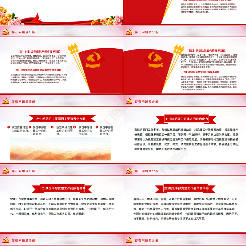 存在問題及分析基層黨建工作實(shí)際推動(dòng)、督促檢查、跟蹤問效不足,個(gè)別村黨組織“三會(huì)一課”制度形同虛設(shè),“四議兩公開”說而不做。個(gè)別村黨組織基礎(chǔ)薄弱,負(fù)責(zé)人庸懶散軟,謀劃工作思路不清,破解難題辦法不多,班子沒有戰(zhàn)斗力,干部沒有公信力。[三]對(duì)村級(jí)黨組織嚴(yán)督實(shí)導(dǎo)不到位目前還有1個(gè)村級(jí)活動(dòng)場(chǎng)所無法正常使用卻又尚未找到建設(shè)用地,黨員難以開展活動(dòng)。重建設(shè),輕管理。已經(jīng)建好的一些村級(jí)組織活動(dòng)場(chǎng)所擔(dān)負(fù)的村務(wù)辦公議事中心、黨組織活動(dòng)中心、黨員群眾教育培訓(xùn)中心、為民便民服務(wù)中心和村民文化娛樂中心這些功能沒有很好發(fā)揮出來。[四]村級(jí)組織活動(dòng)場(chǎng)所建設(shè)服務(wù)管理不到位