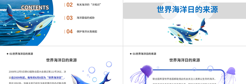 2022世界海洋日PPT卡通風世界海洋日知識宣講課件模板