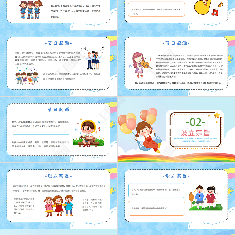 節(jié)日起源01目錄CONTENT設(shè)立宗旨02認(rèn)識(shí)兒歌03兒歌記憶04