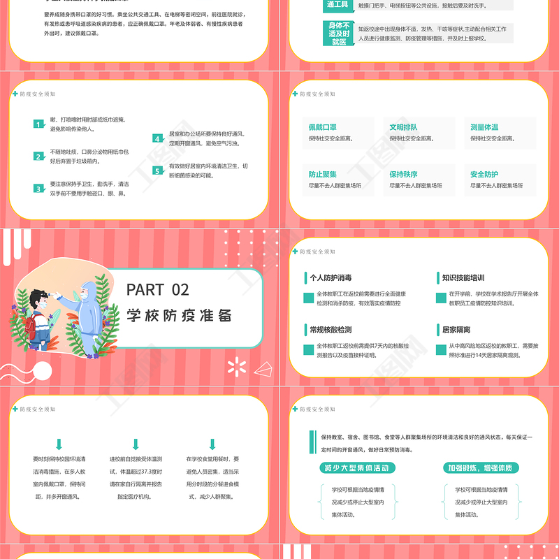 2022校園防疫安全教育PPT簡約卡通風校園防疫安全教育課件模板 Array