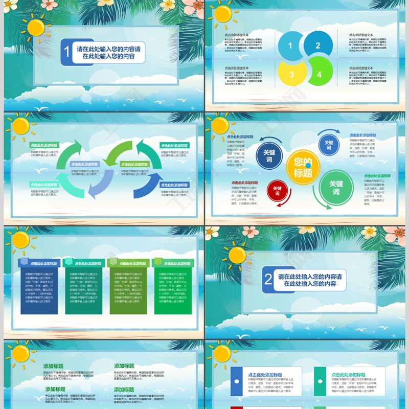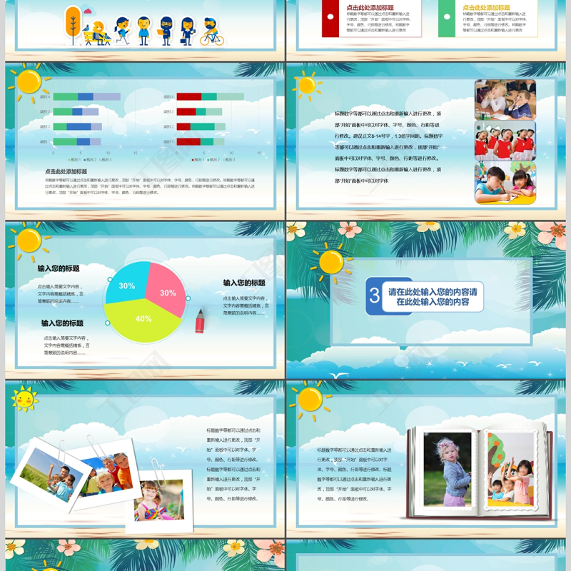 原創快樂暑假親子游我的暑假生活電子相冊PPT動態模板-版權可商用包含