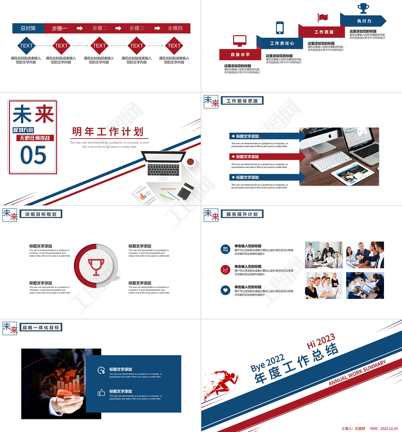 2023年度工作總結PPT紅藍雙色創意年終工作總結報告新年工作計劃模板 Array