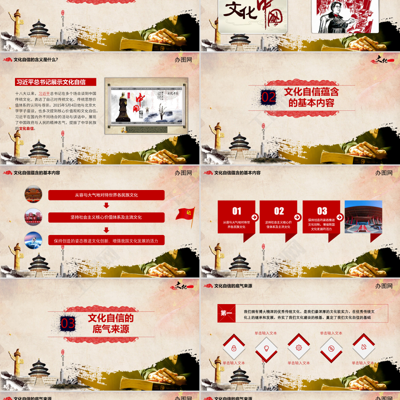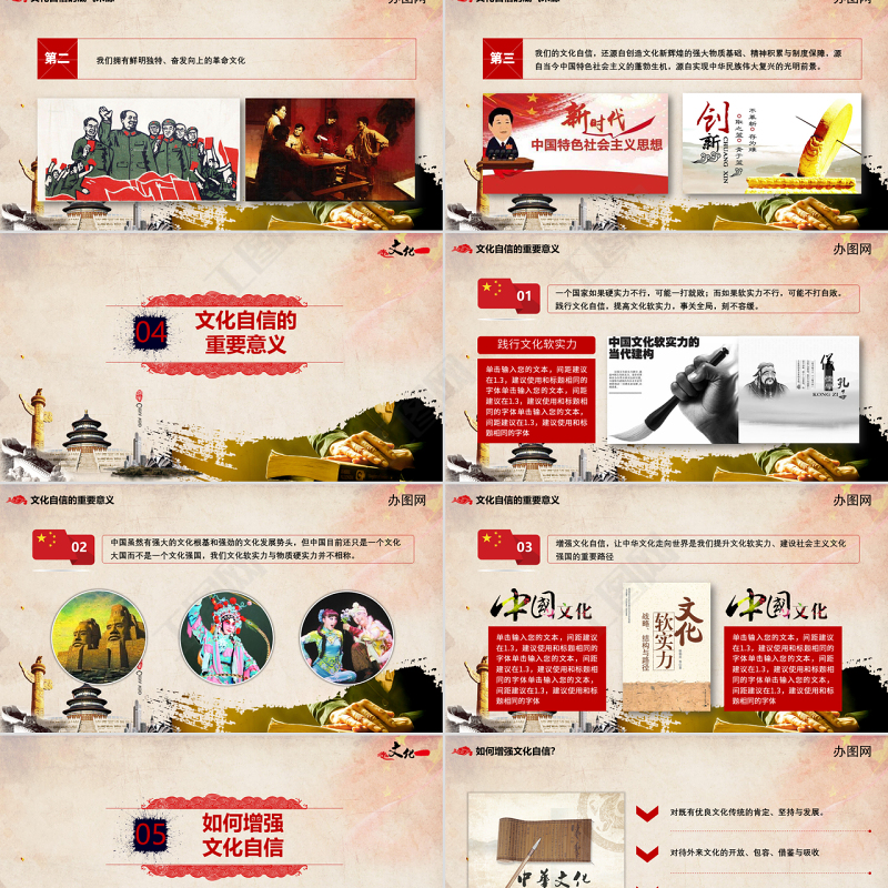 工圖網(wǎng)提供全面解析增強(qiáng)文化自信黨政風(fēng)中國(guó)風(fēng)黨課黨建培訓(xùn)課件PPT模板供會(huì)員免費(fèi)下載。更多精彩黨課PPT素材,盡在工圖網(wǎng)。