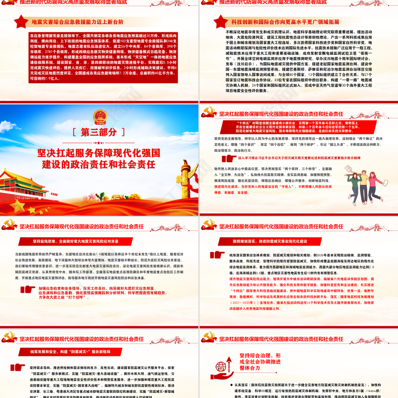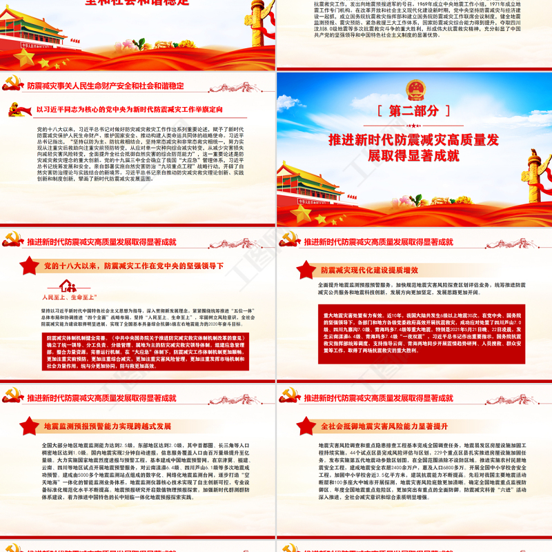 奮力譜寫防震減災高質量發(fā)展新篇章PPT黨政風黨員干部學習教育專題黨課課件模板 Array
