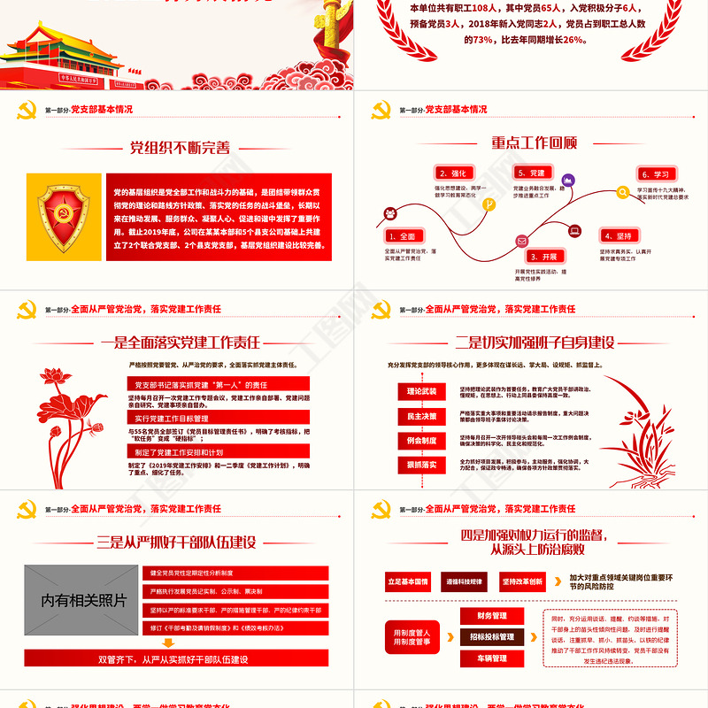 第一部分-全面從嚴管黨治黨,落實黨建工作責任延時符嚴格按照黨要管黨、從嚴治黨的要求,全面落實抓黨建主體責任。堅持每月召開一次黨建工作專題會議,黨建工作親自部署、黨建問題親自研究、黨建事項親自督辦。與55名黨員全部簽訂《黨員目標管理責任書》,明確了考核指標,把“軟任務”變成“硬指標” ;制定了《2019年黨建工作安排》和一二季度《黨建工作計劃》,明確了重點、細化了任務。