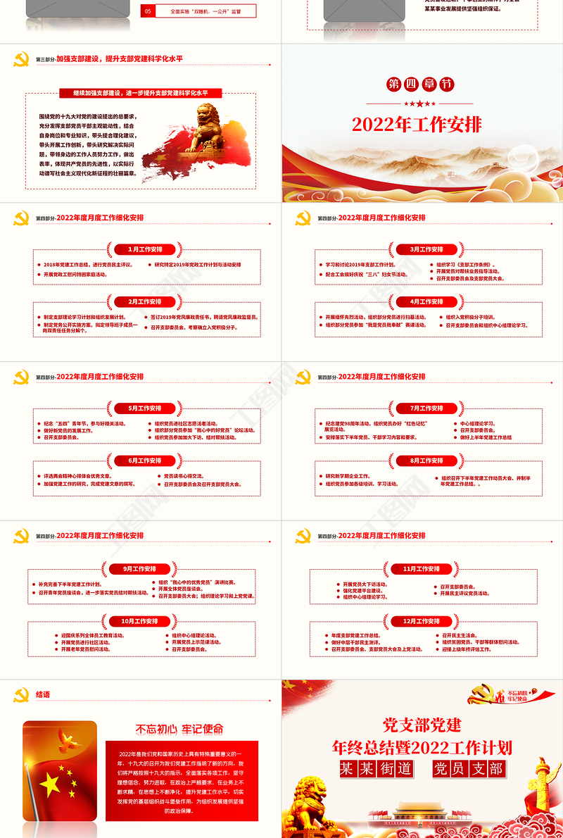 工圖網提供紅色簡約街道辦基層黨支部2021年黨建工作總結暨2022年黨建工作計劃黨課課件PPT模板供會員免費下載。更多精彩黨課PPT素材,盡在工圖網。