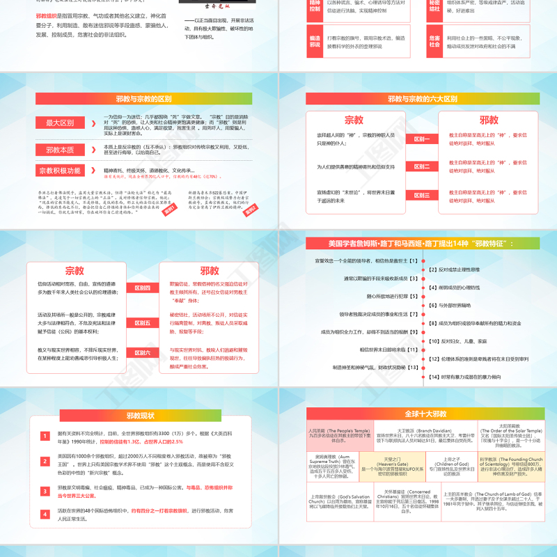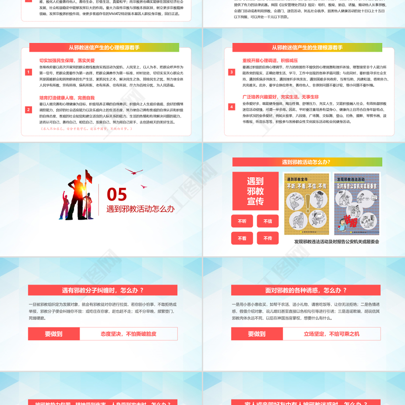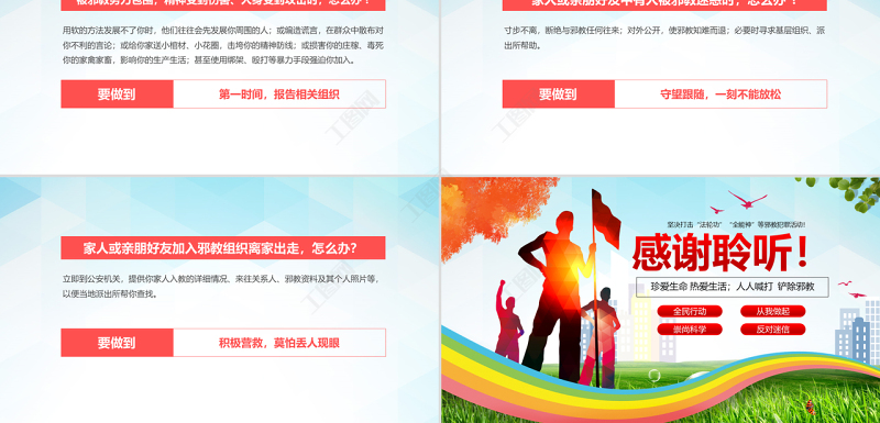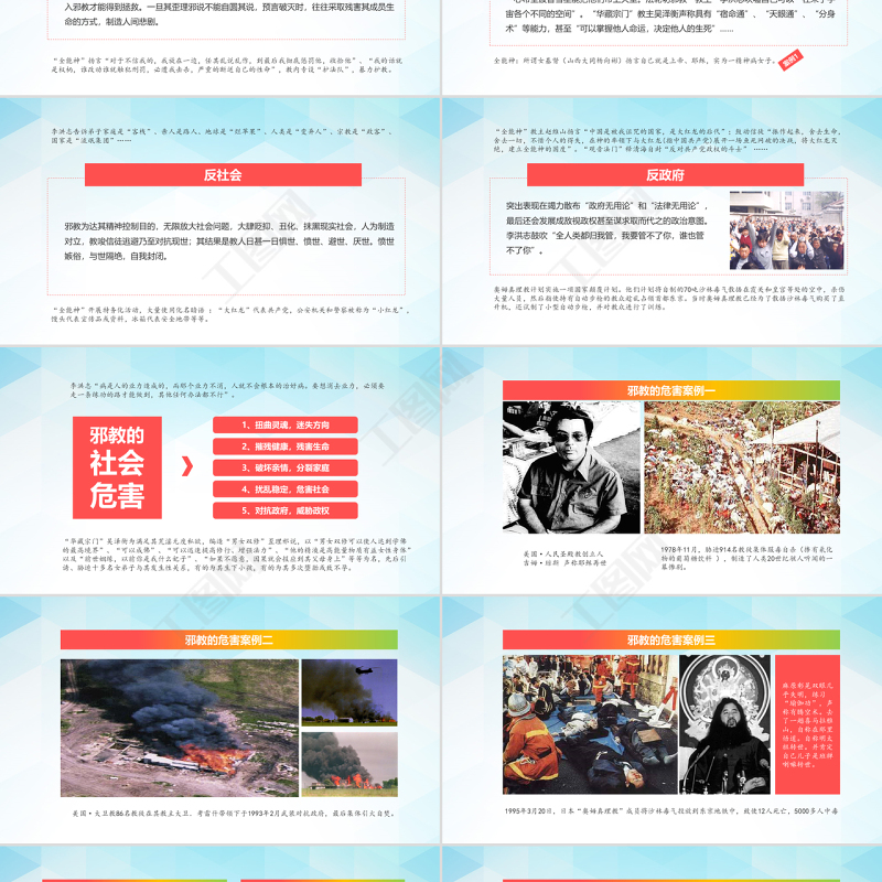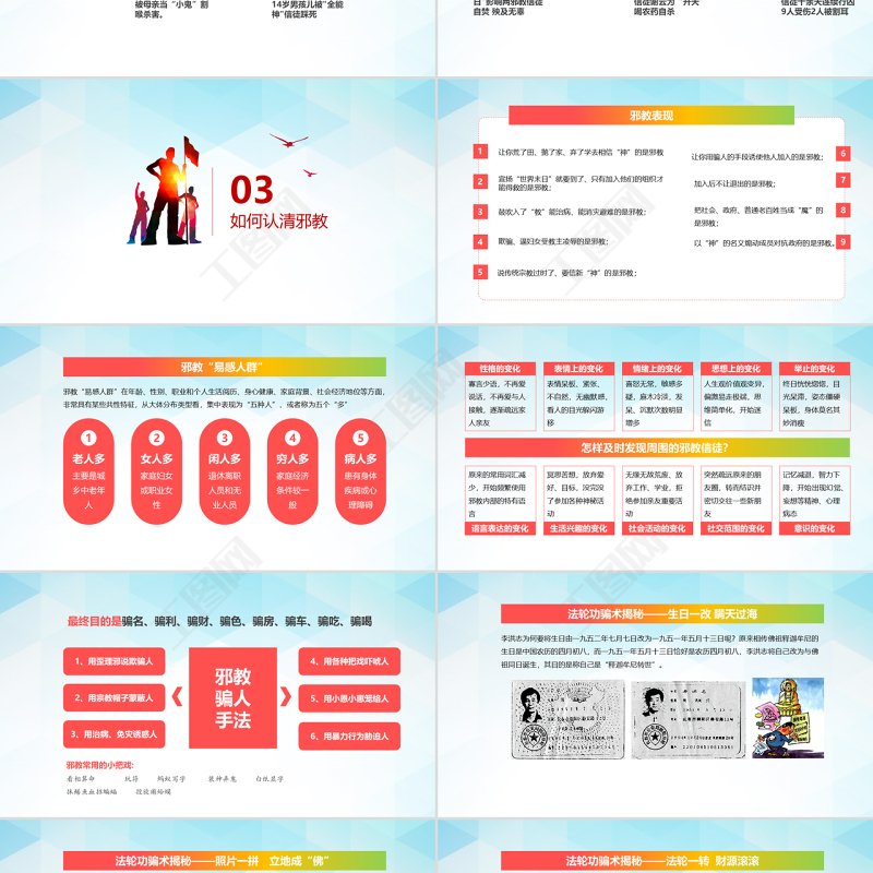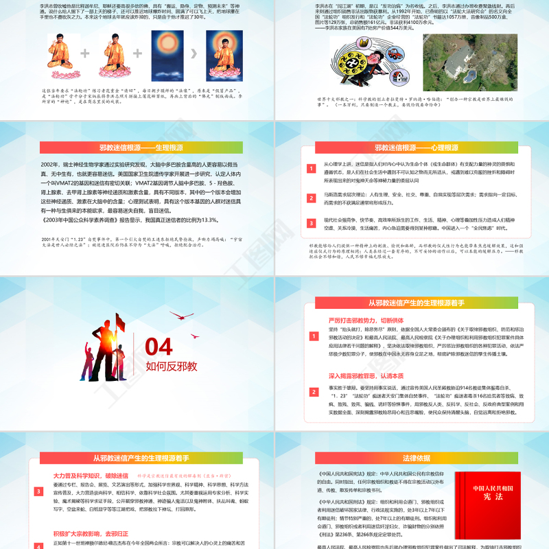 工圖網提供清爽風格正氣旗幟內容完整反邪教PPT模板供會員免費下載。更多精彩黨課PPT素材,盡在工圖網。