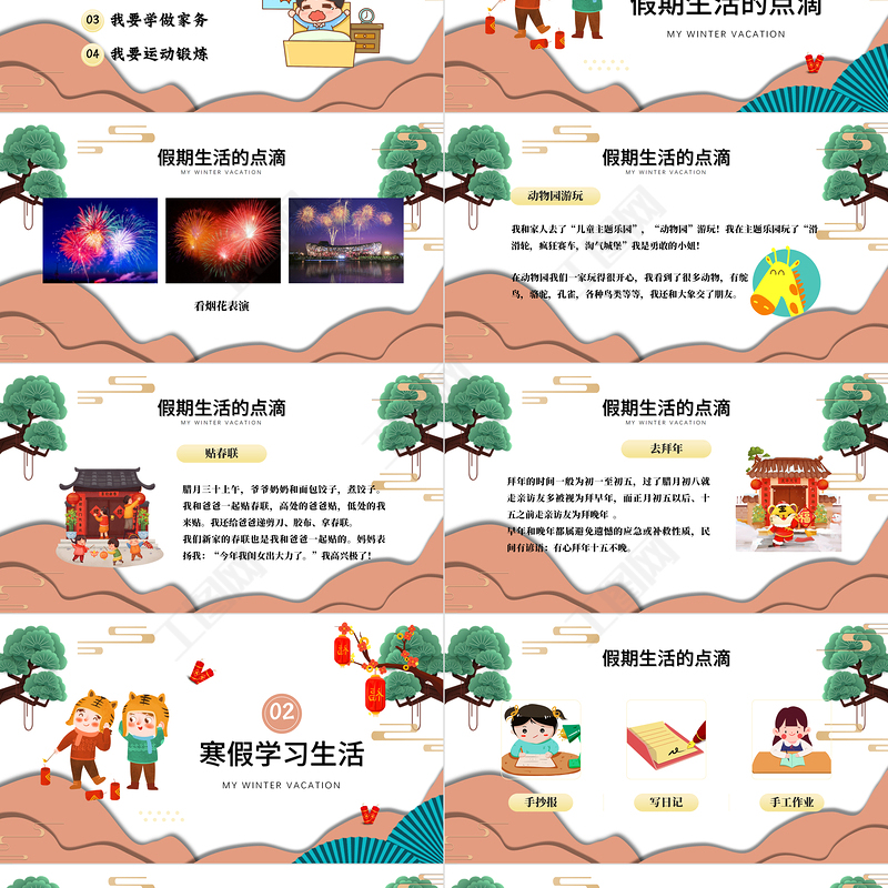 2022我的寒假生活成長冊PPT中國風中小學生寒假生活課件模板