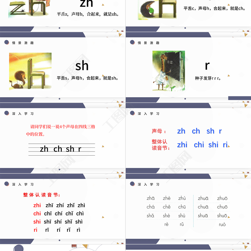 工圖網提供人教版小學一年級語文上冊第二章漢語拼音(八):zh、ch、sh、r(含配套教案)zhchshr課件PPT供會員免費下載。更多精彩黨課PPT素材,盡在工圖網。
