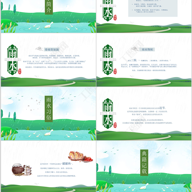 工圖網提供二十四節氣之雨水主題班會動態PPT模板供會員免費下載。更多精彩黨課PPT素材,盡在工圖網。