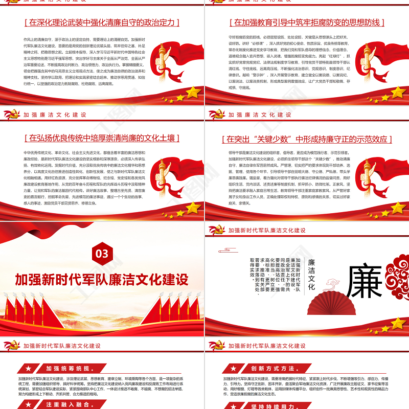 大力加強新時代軍隊廉潔文化建設PPT紅色簡約風廉政廉潔專題黨課課件模板 新時代軍隊廉潔文化建設 ppt紅色 簡約 大氣 紅色ppt 紅色PPT 加強