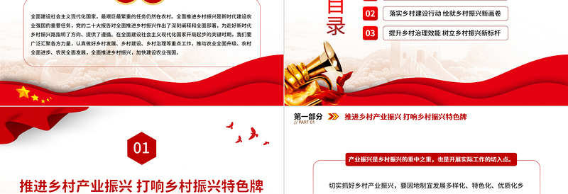 目錄010203推進鄉村產業振興 打響鄉村振興特色牌落實鄉村建設行動?繪就鄉村振興新畫卷提升鄉村治理效能?樹立鄉村振興新標桿