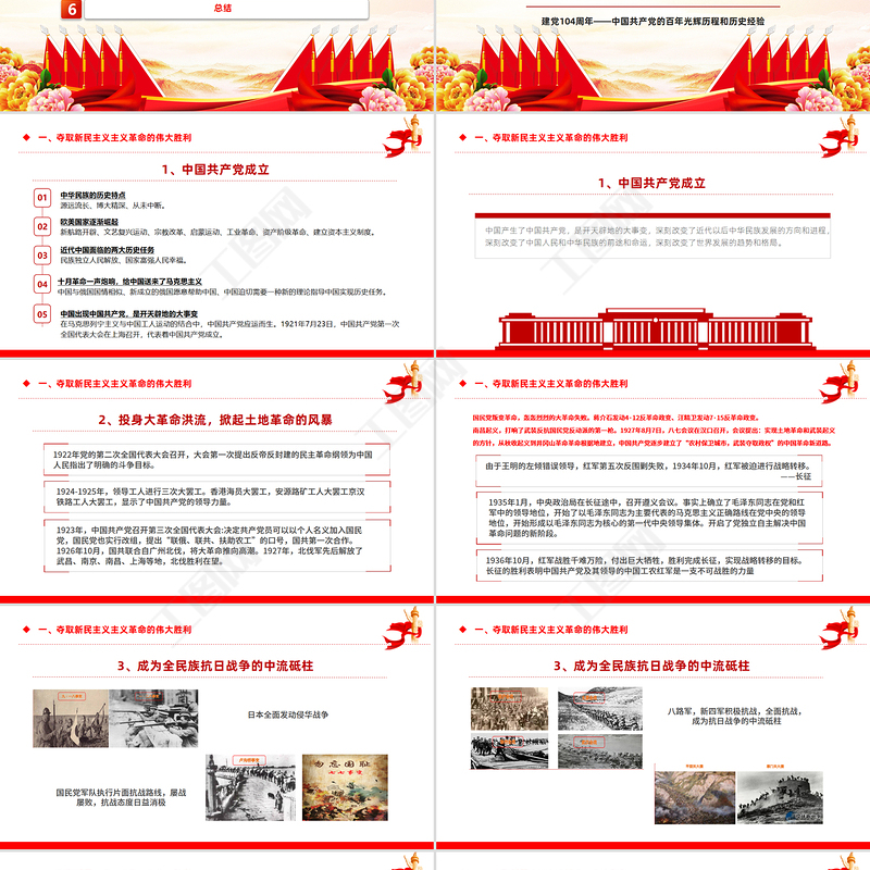 建黨104周年PPT紅色大氣中國共產黨的百年光輝歷程和歷史經驗七一黨課課件 Array